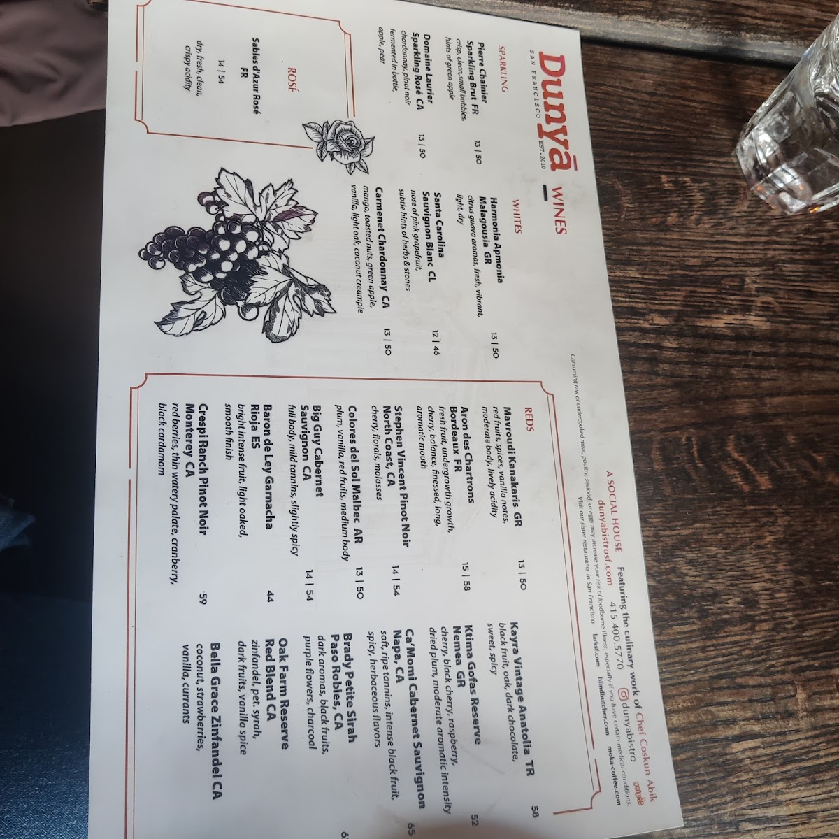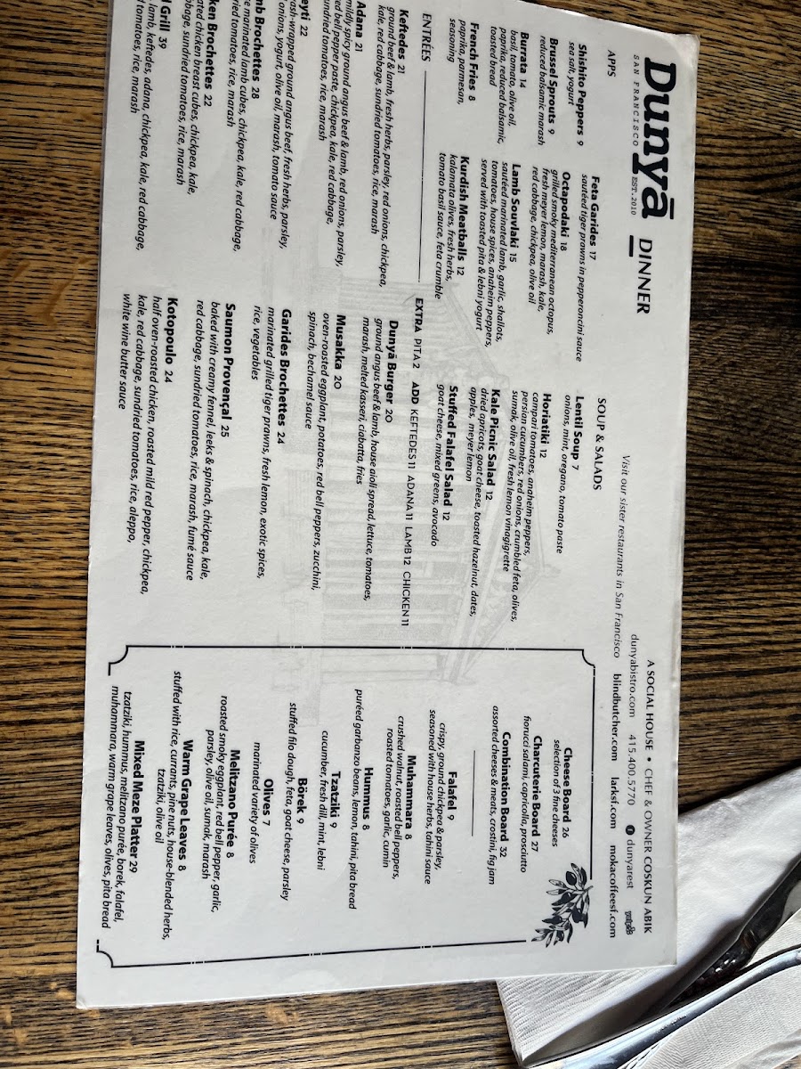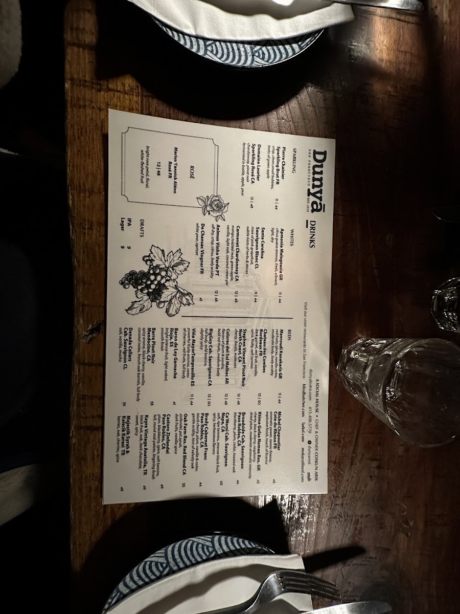 Dunyā Mediterranean Bistro & Wine Bar Menu